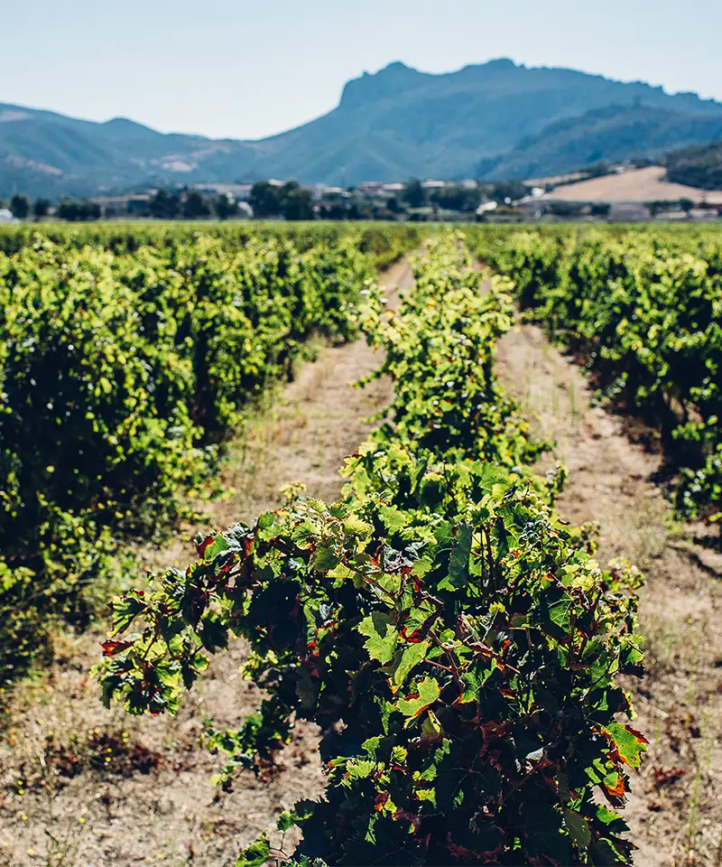 Si allunga ordinata lungo i pendii che guardano il mare, affonda le radici in una terra ricca e viva, si lascia accarezzare dal vento salmastro e dalla luce piena della Sardegna. I vigneti della tenuta sono coltivati con metodi naturali e rappresentano il cuore pulsante del paesaggio agricolo, ma anche il punto di partenza per una narrazione enologica unica.
