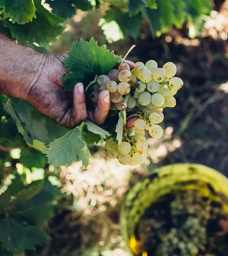 La raccolta, rigorosamente manuale, avviene in cassette forate per preservare l’integrità del grappolo. Le uve vengono poi portate in cantina dove inizia un lavoro di vinificazione coerente con l’origine: fermentazioni spontanee, uso sapiente del legno, rispetto dei tempi. Ogni bottiglia è figlia di una vigna precisa, di una luce, di un vento, di un’annata.